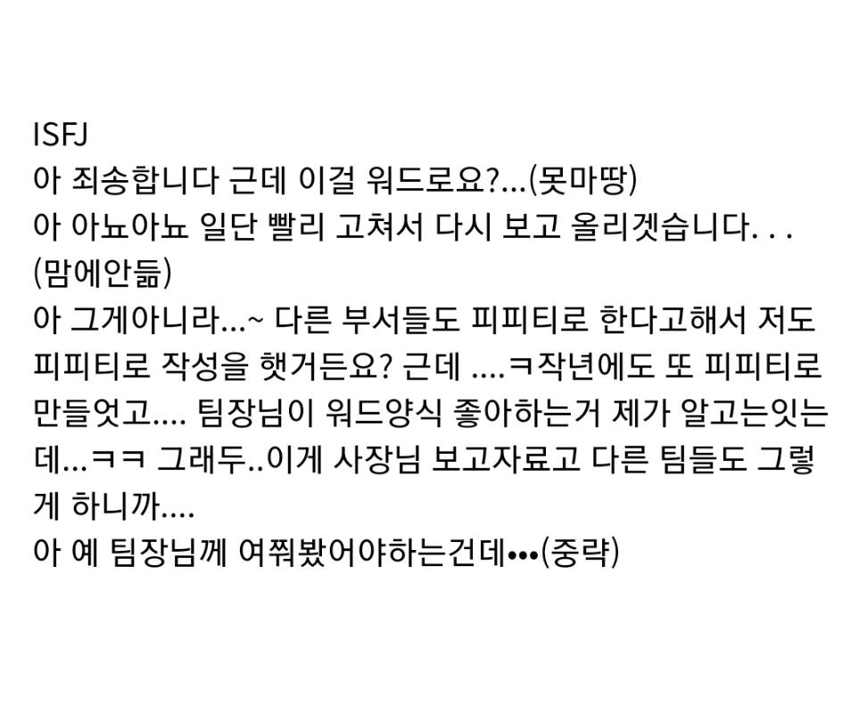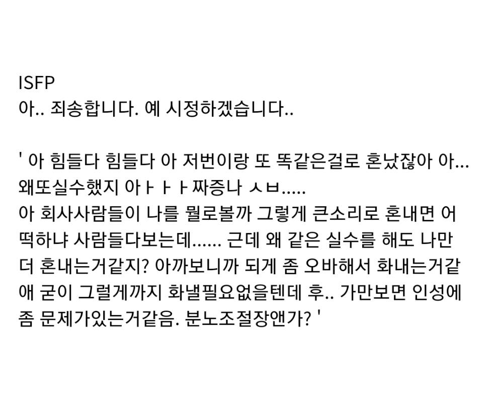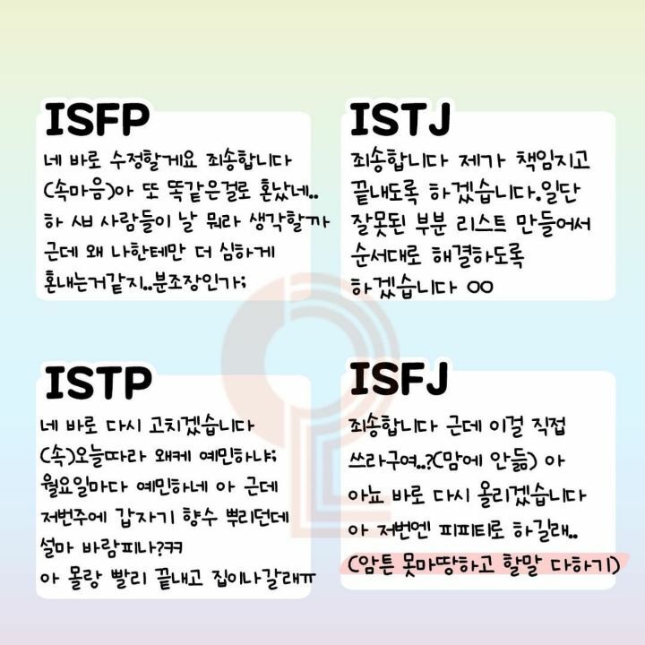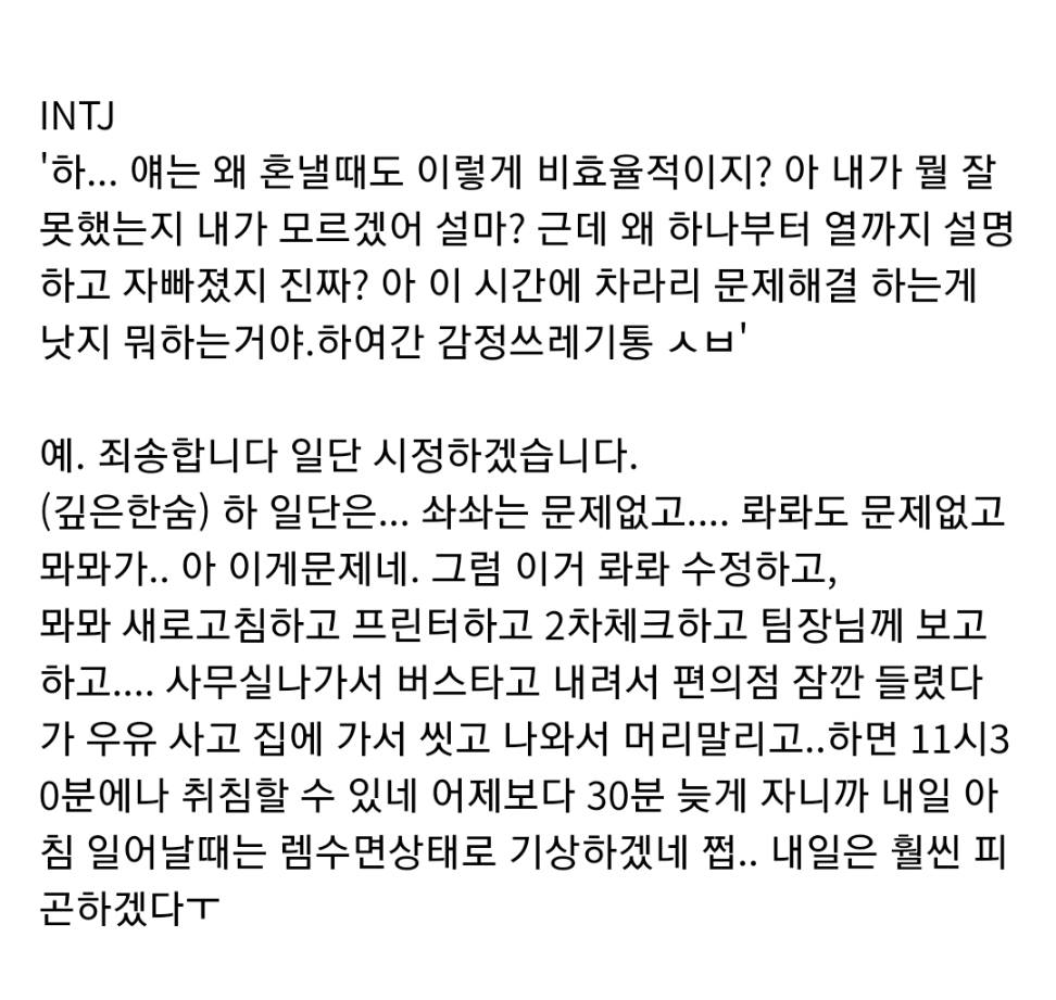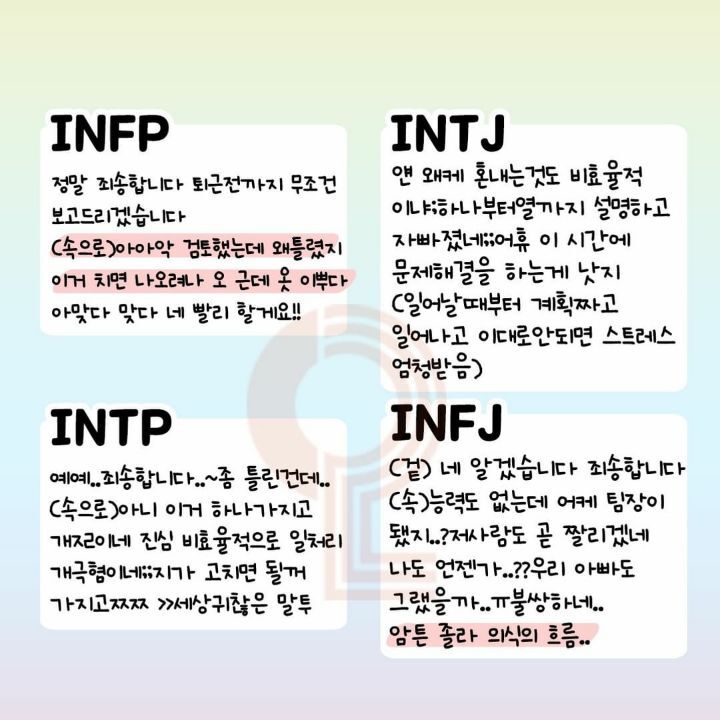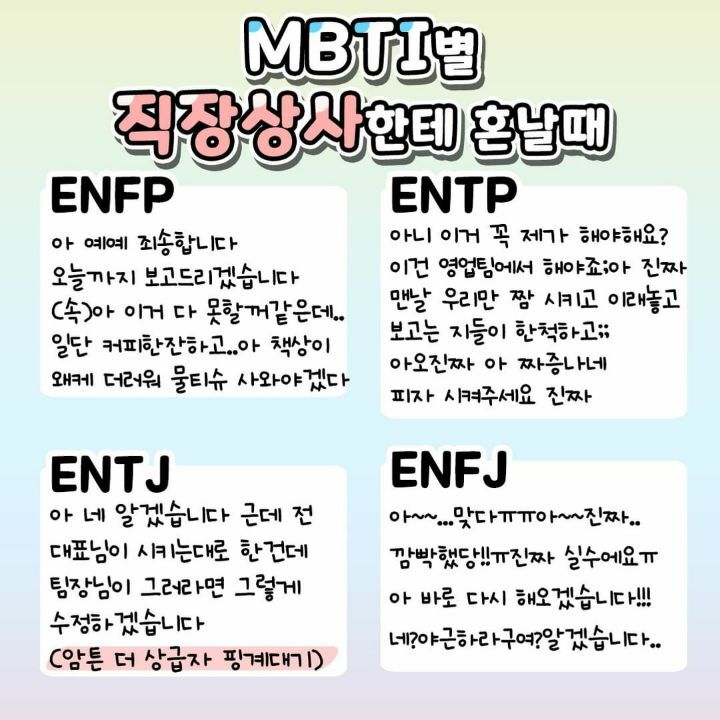 MBTI 별 직장 상사한테 혼날 때