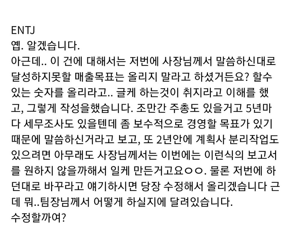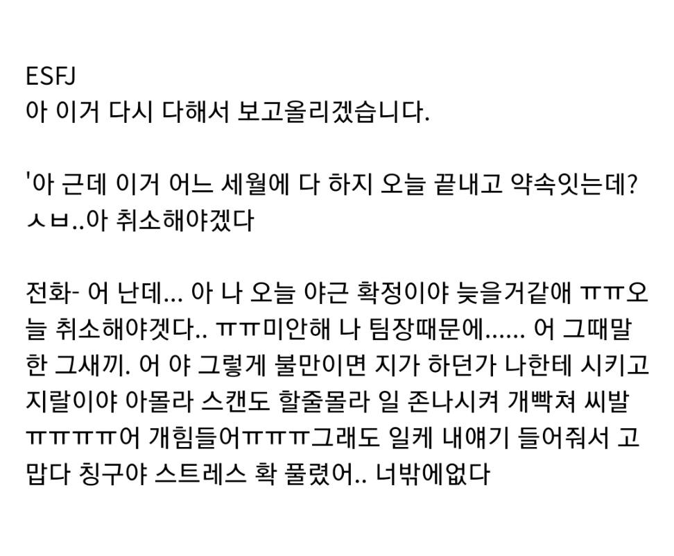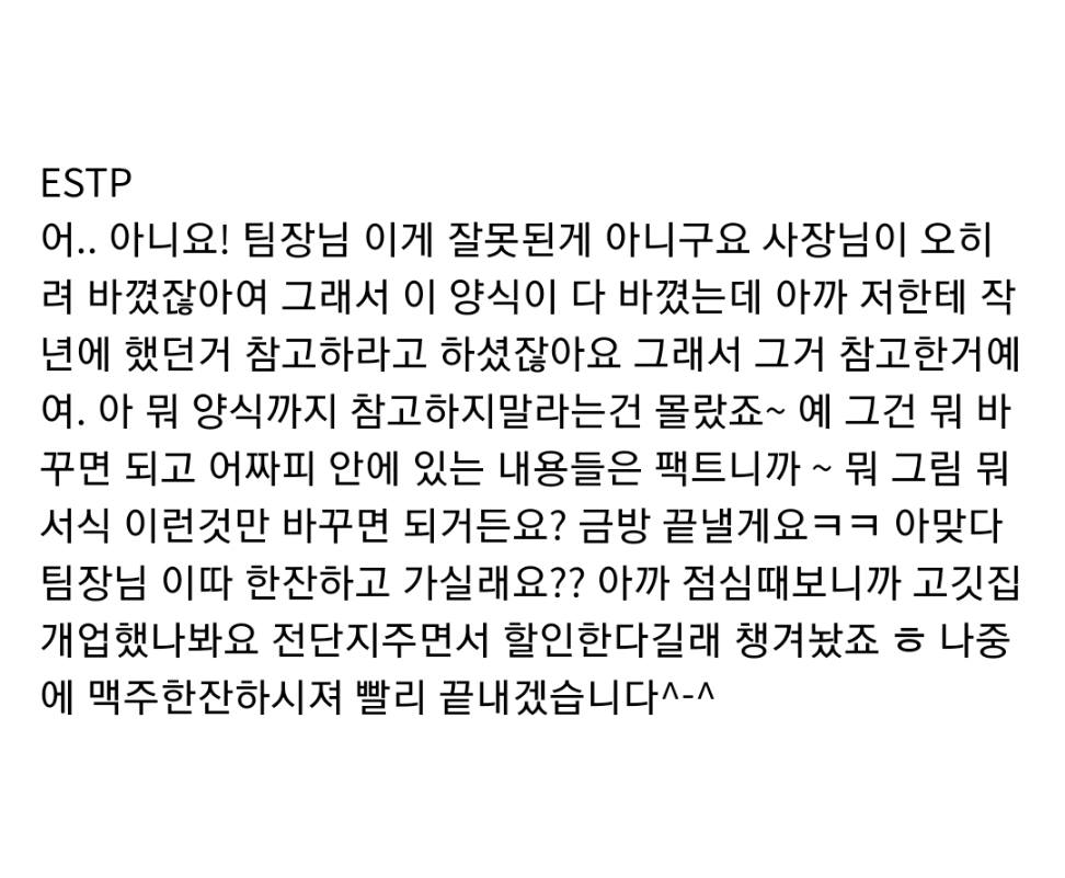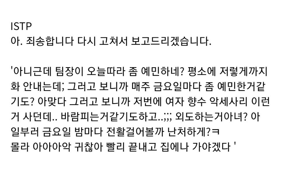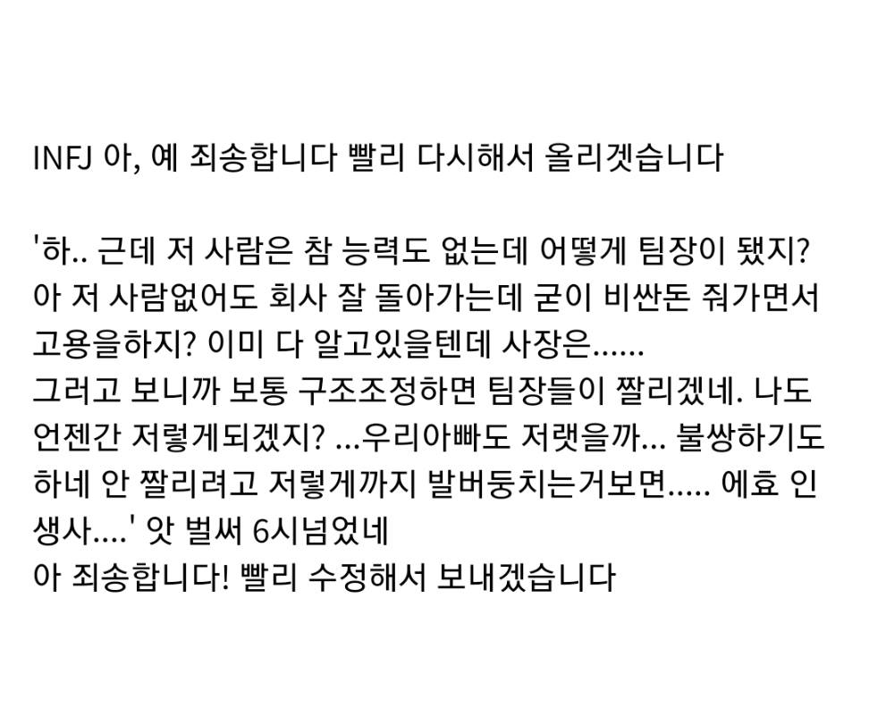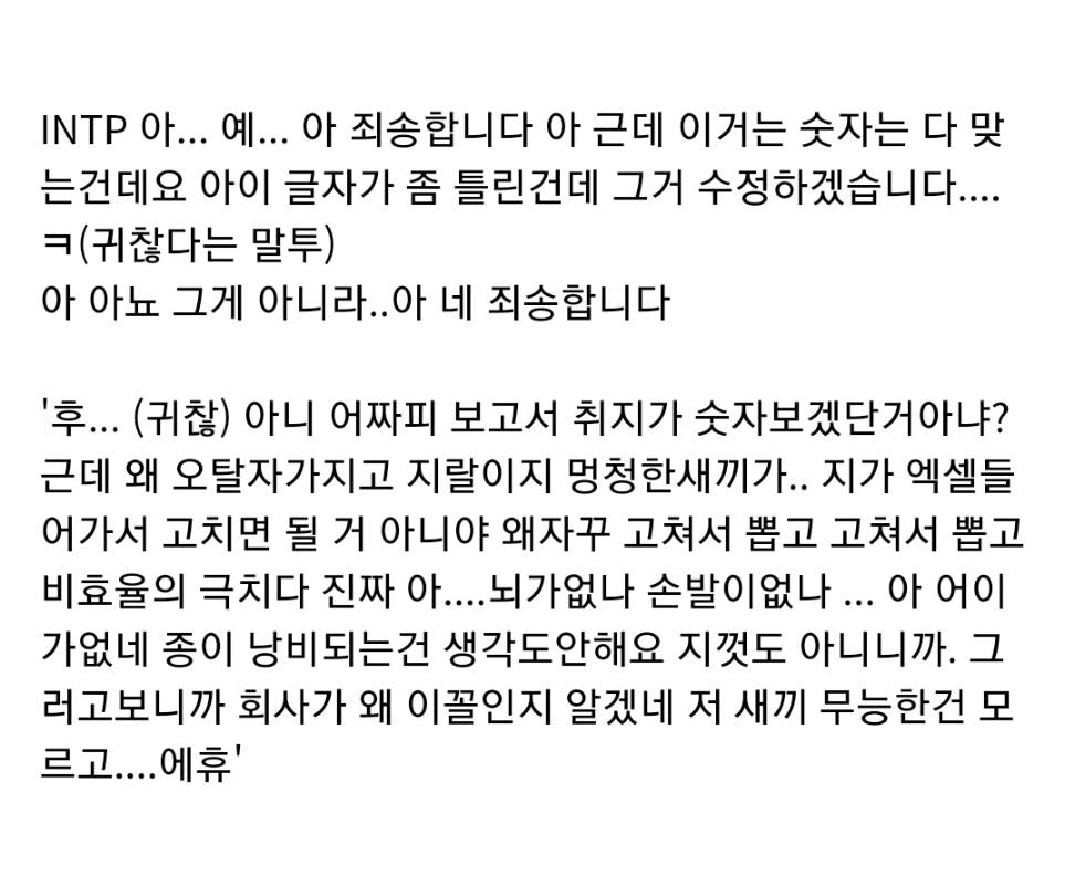 MBTI 별 직장 상사한테 혼날 때